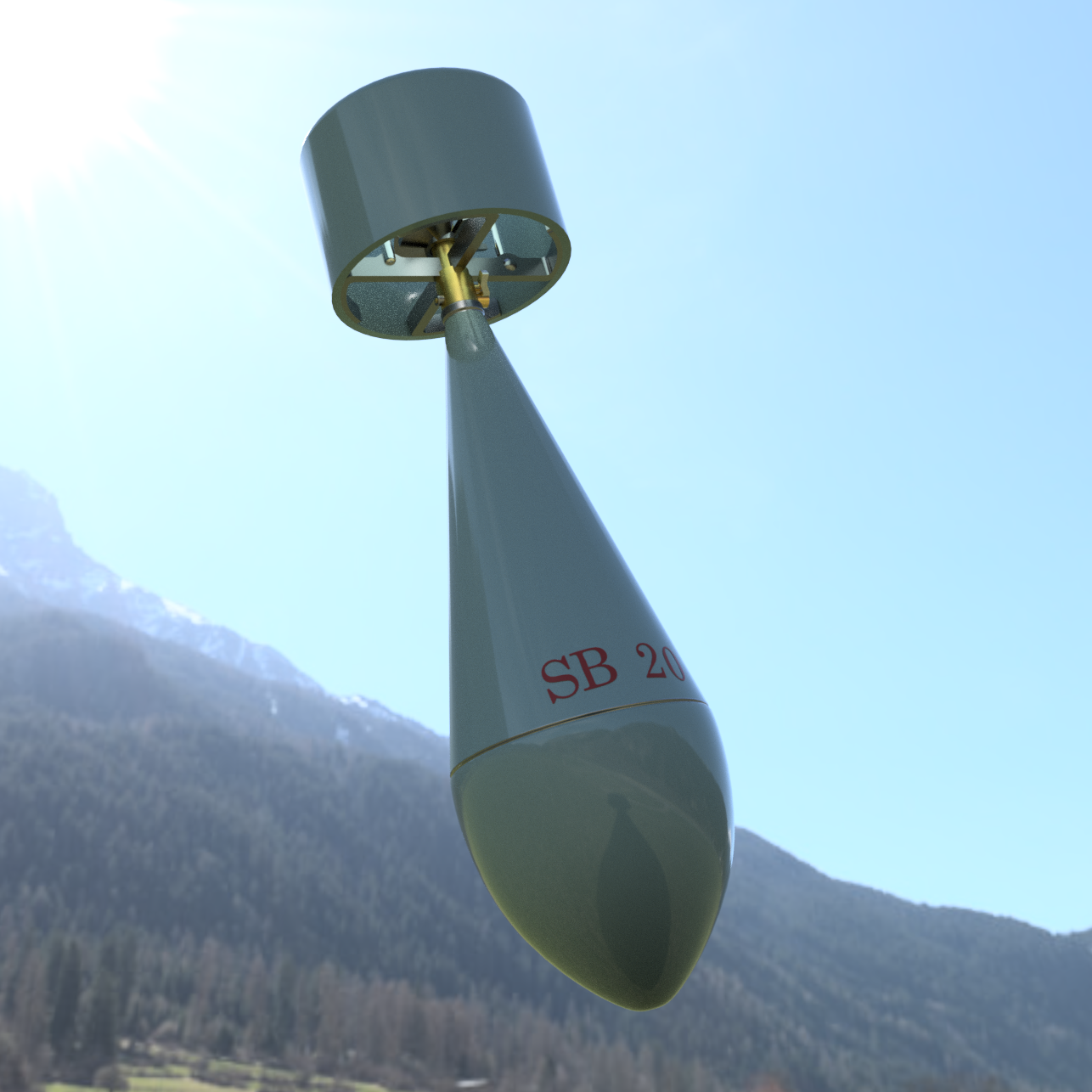 History: Škoda Works of Plzeň produced a series of aerial bombs, including this 20kg high-explosive type, for the Kaiserliche und Königliche Luftfahrtruppen during the First World War. These simple, general-purpose, steel-cased sprengbomben were typically suspended externally on racks or hooks beneath the wings or fuselage of two-seat reconnaissance and light bomber aircraft. They were employed tactically for ground attack and battlefield interdiction on the Italian, Balkan, and Eastern fronts from about 1915–1918. The 'S.B. 20' would become one of the empire’s most common late-WWI bombs.