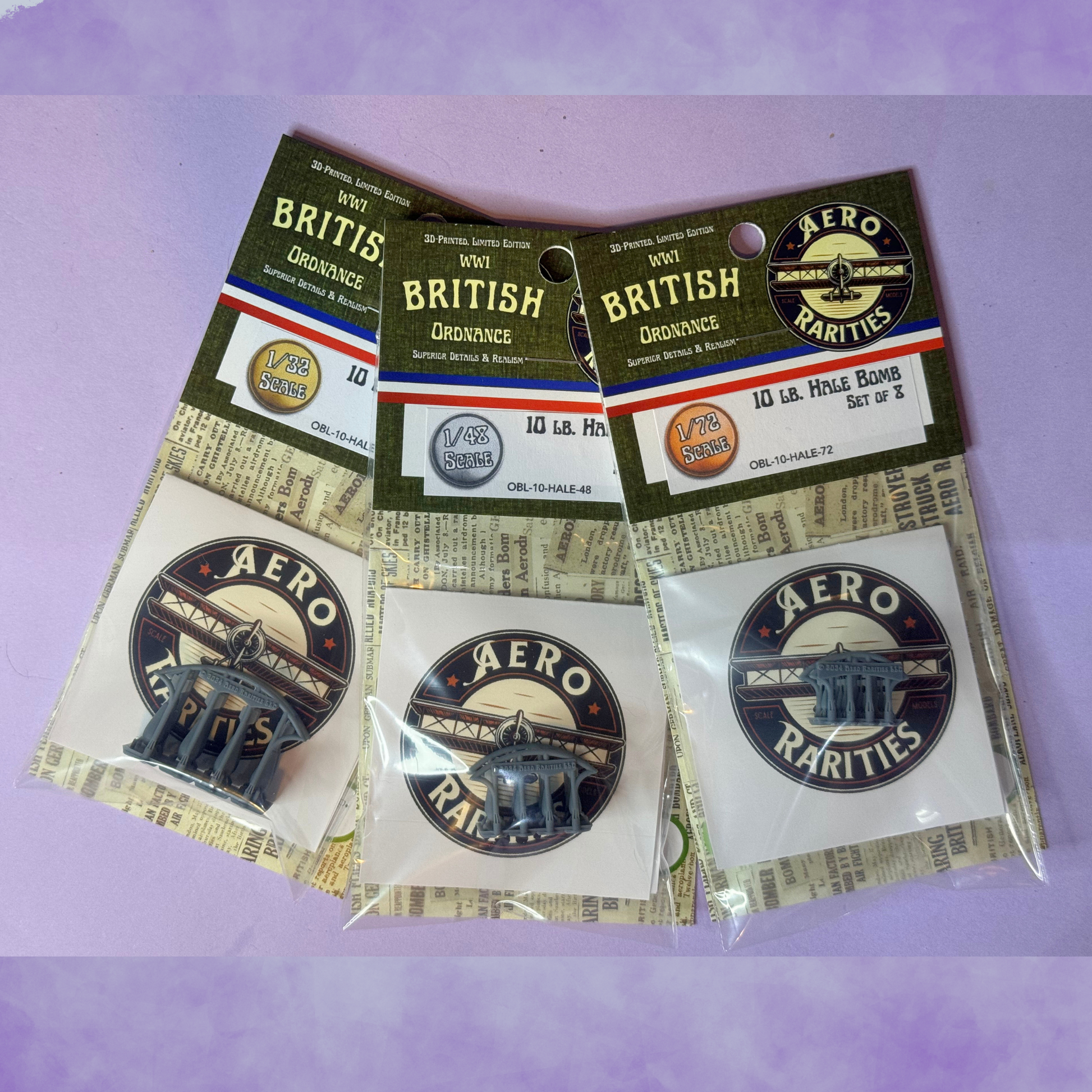 Comprising: Eight unpainted, 3D-printed resin bombs in your choice of 1/72, 1/48, or 1/32 scale.