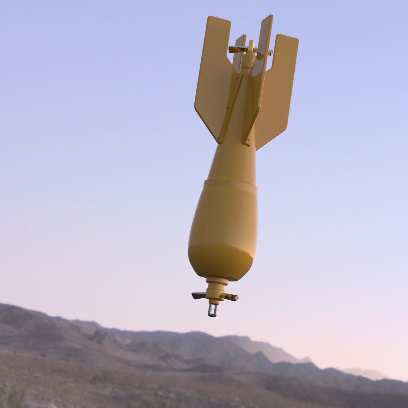 History: Designed to be stowed vertically rather than horizontally like most other British bombs of the era, the 50lb High Explosive bomb was developed by the Royal Laboratory. Perhaps its most famous use was during the Tondern Raid of July 1918, when seven Sopwith Camels flew from the deck of HMS Furious to destroy two German Zeppelins.